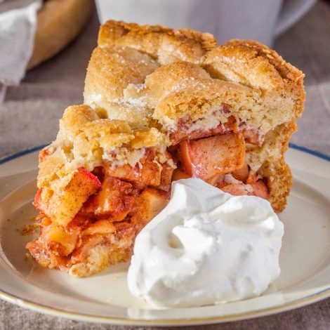 This is very close to my memory of the Winkel 43 appeltaart. I don’t have a springform pan, so I crisscrossed strips of parchment to allow me to lift it out of the pan, which worked well once the pie had cooled.
