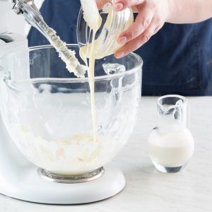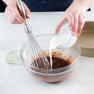 Whole milk: Also referred to as full-fat milk, whole milk is cow’s milk that hasn’t had any of its natural fat content removed. Whole milk is typically 3.5% milk fat, making it rich with a slightly thicker consistency. The added fat and moisture of whole milk help create a tender, richer cake.