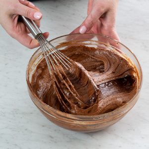 - It’s important not to incorporate excess air into your mirror glaze, so when you’re whisking in the gelatin mixture and cocoa, whisk just until combined. After going through the sieve, there shouldn’t be any air bubbles in the mixture.