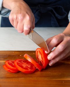 - 2½ pounds (1,134 grams) vine-ripened tomatoes, sliced crosswise ¼ inch thick