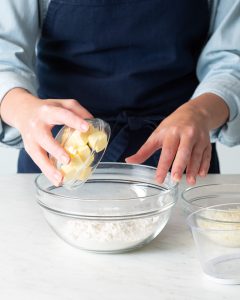 Kosher salt: Kosher salt has a pure, clean flavor because it doesn’t contain iodine or minerals. When it comes to salt, one important thing to note is that salt granules come in different sizes and densities, so be sure to weigh your salt for the most accurate measure.