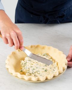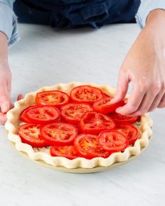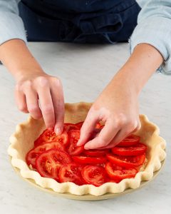In three simple steps, you’ll have a wonderfully tender, flaky piecrust that’ll pair perfectly with this pie’s cheesy tomato filling