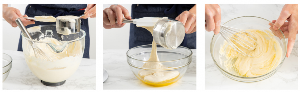 - In a small bowl, sift together flour, cornstarch, and salt. Using a large balloon whisk, gently fold flour mixture into egg mixture in two additions just until combined.