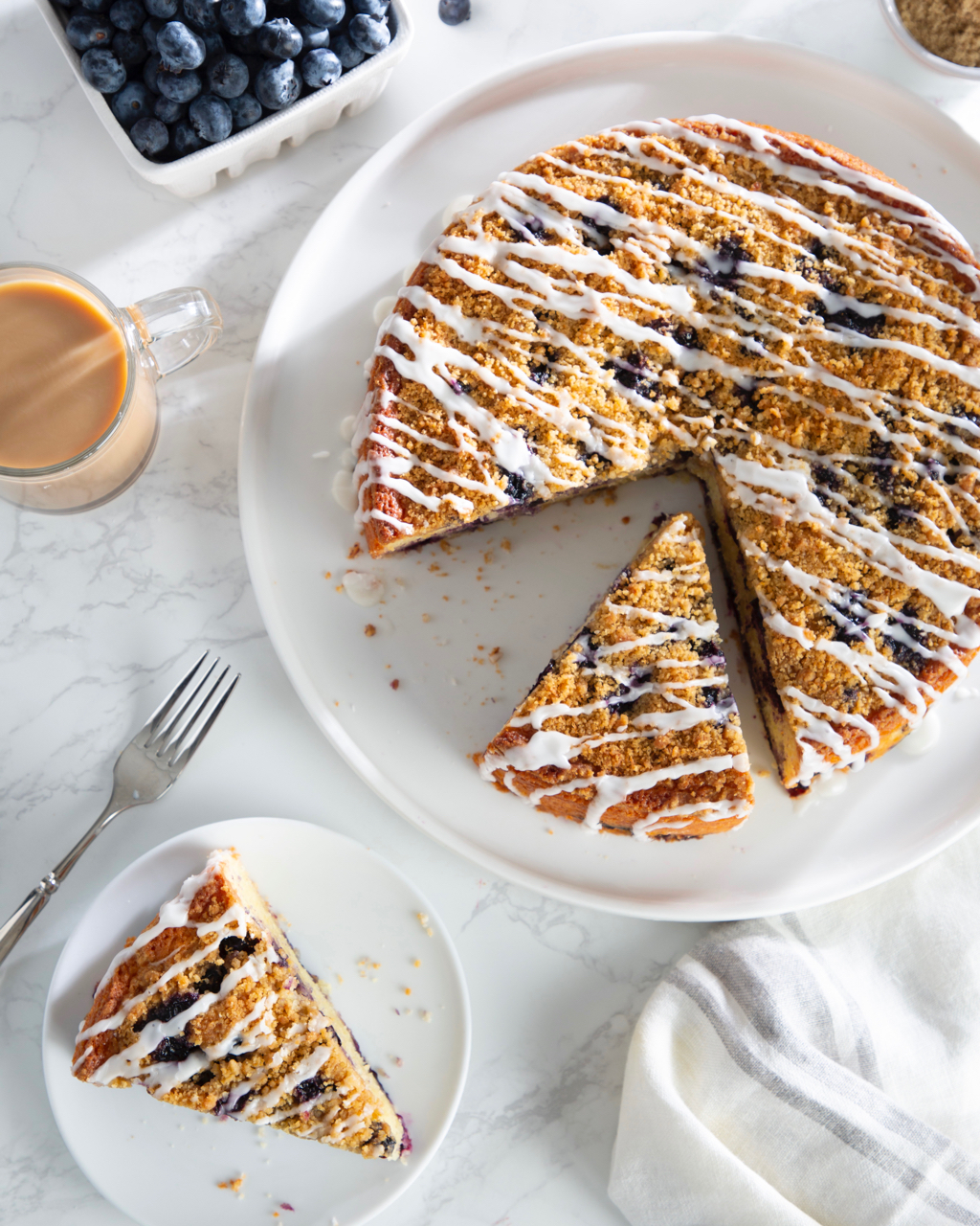 Studded with whole blueberries and topped with a perfectly golden streusel, this seasonal coffee cake is a classic crowd-pleaser. What makes this coffee cake uniquely fantastic? Every layer, from the golden streusel topping to the tender blueberry base, packs unrivaled sweetness courtesy of C&H Sugar. We complemented the juicy blueberries in the batter with C&H® Granulated Sugar and the beautiful crumble topping has a distinct caramel crunch thanks to C&H® Golden Brown Sugar. Served with a simple glaze made with C&H® Confectioners’ Sugar, this is the ideal breakfast treat.