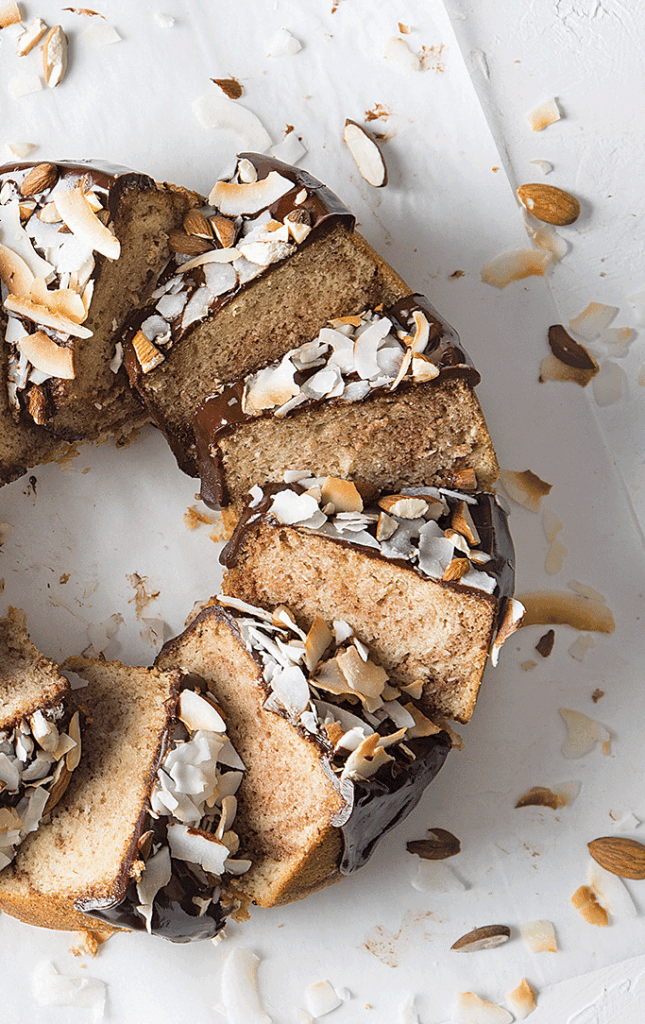 A candy bar inspired our modern—and even more indulgent—makeover of the classic chiffon. We piled on coconut, almond, and chocolate for flavors reminiscent of an Almond Joy. Coconut oil, subbed in for the canola oil, adds depth and nuttiness without sacrificing the cake’s texture.
