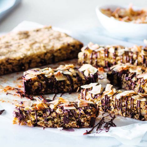 Packed with coconut flakes and dark chocolate chunks, these bars are like the baked version of a Mounds bar. Almond flour gives them a nutty flavor and extra tender texture, while a final drizzle of dark chocolate makes these the ultimate portable treat.