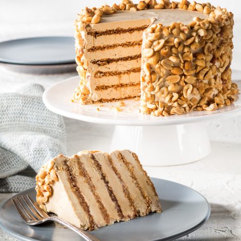 This Coffee-Peanut Meringue Cake is a nutty mix-up of the traditional French dacquoise, almonds and hazelnuts are swapped out for finely chopped peanuts. Roasted notes from coffee in the buttercream complement the peanut meringue, and the creamy-crunchy combination leads to a divine sensory experience.