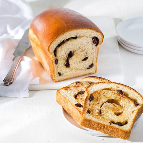 This enriched dough brimming with rum-soaked raisins and flavored with a pinch of cinnamon is our take on Bermudian raisin bread traditionally used for Bermuda fish sandwiches. The best part about this bread is that you don’t need fried snapper and all the fixings to enjoy it. It’s just as delicious on its own. For even more visual appeal, we added a distinctive raisin-filled swirl to our version of the bread.