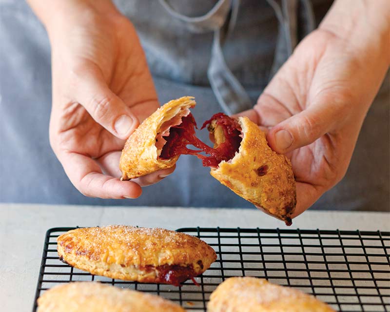 When chef Lisa Donovan of Nashville, Tennessee was forming her strawberry filling recipe, she had one particular taste in mind: the sweet strawberry flavor of a spoonful of Smucker’s jam. Slow roasting the berries in sugar yielded the strawberry essence she was searching for. This recipe uses Lisa’s Hand Pie Dough