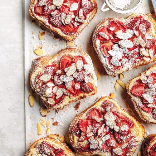 Sitting somewhere between French toast and an almond croissant, this Strawberry Bostock is a French invention that ingeniously turns leftover slices of brioche bread into rich, radiant pastries. Each slice is brushed with a honey lemon syrup, slathered with an aromatic almond frangipane, and then topped with ruby-red fresh strawberries. We can’t think of a better or simpler springtime treat! Learn all about Brioche in our March/April 2023 issue!