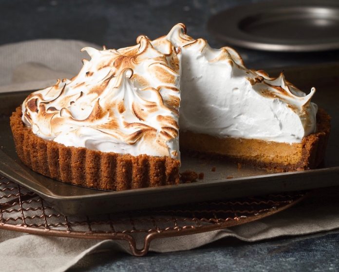 A twist on the classic sweet potato pie, our tart has a speculoos cookie crust filled with vanilla bean seed-speckled sweet potato filling and garnished with a billowy meringue that’ll inspire only the fluffiest of marshmallow fantasies. Find more delicious sweet potato inspiration in our September/October 2020 issue!